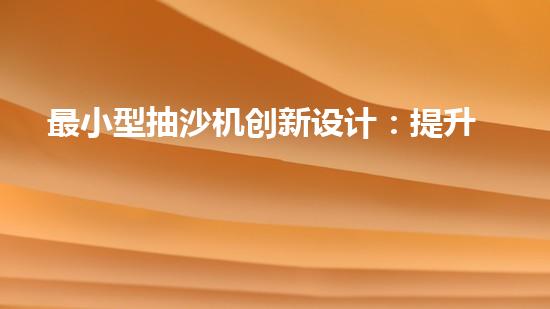 最小型抽沙機創新設計:提升效率的抽沙設備如何改變產業格局?